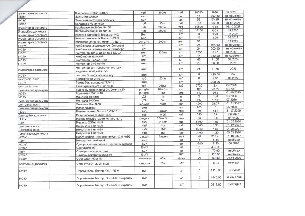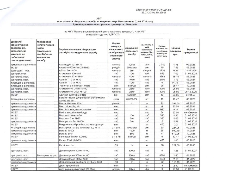Звіт про залишки лікарських засобів